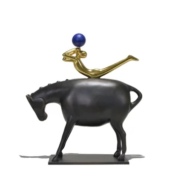 Modern Sculpture Ride the Green Ox Art Craft Ornament Handmade Bronze Gift Custom Gold Foil